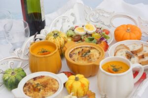 料理の飾り付けをハロウィンぽくしたりするだけです。